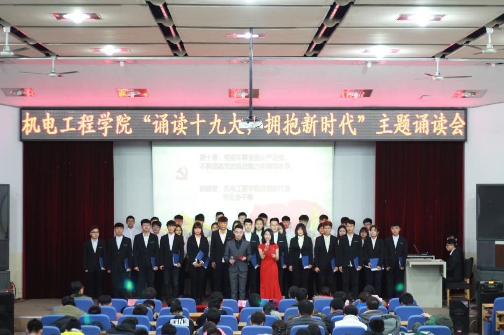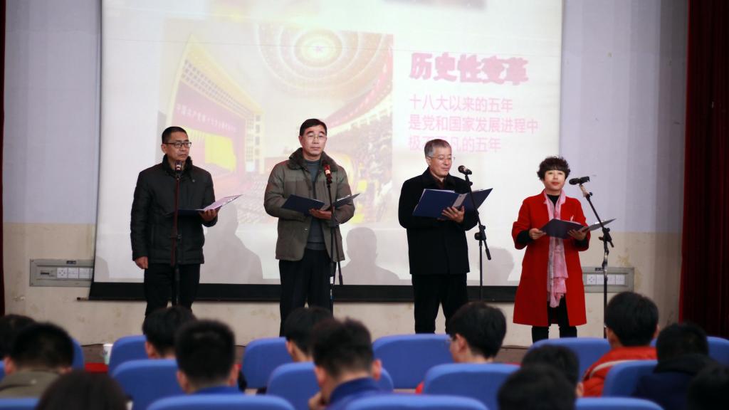 2017年12月20日下午,球天下在昌黎校区学术报告厅举办了“诵读十九大,拥抱新时代”——十九大报告(节选)诵读会。机电公司领导班子成员、教师党员代表、员工党员、入党积极分子等600余人参加了本次诵读会。