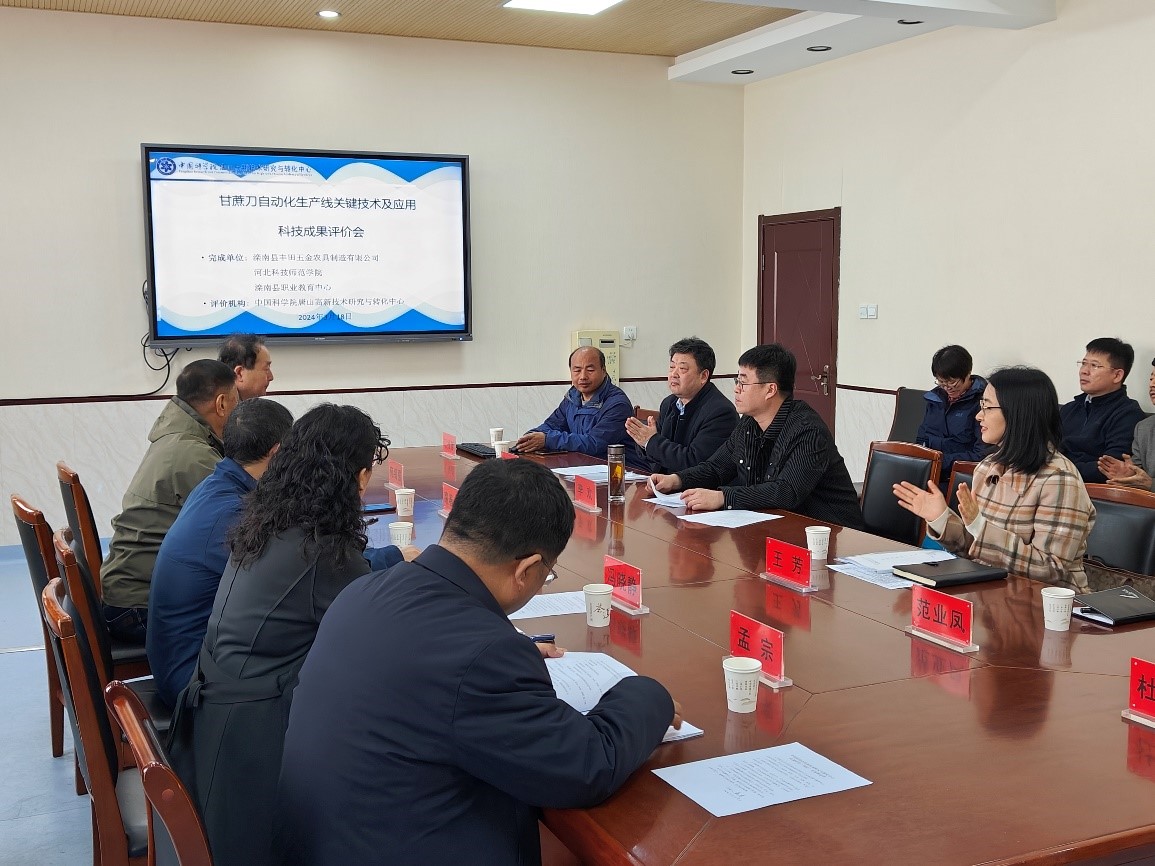 2024年3月18日,由中国科公司唐山高新技术研究与转化中心组织,邀请同行专家对公司球天下农机创新团队与滦南县丰田五金农具制造有限公司、滦南县职业教育中心共同完成的“甘蔗刀自动化生产线关键技术及应用”项目在滦南县职业教育中心进行了成果评价。与会专家听取了课题组的研究情况汇报,审查了相关资料,考察了生产现场,经质疑、答辩和讨论,均给予了高度评价,认为项目创新性强,整体技术达到国际先进水平。