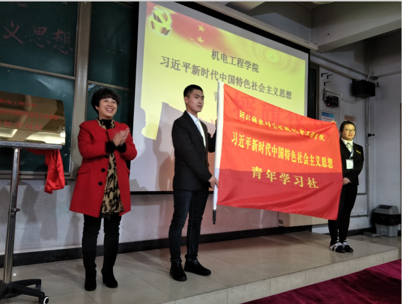 在成立仪式上,青年学习社负责人和委员分别宣读了社团章程和第一届组织机构名单,公司党委负责同志为社团揭牌、授旗并做了讲话,从“学、研、传、行”等四个方面对全体社员提出了四点希望。希望全体社员要认真深入学习十九大报告原文,在学习过程中端正学习态度,摒弃各种装样子、走过场的学习心态,将报告原文学懂、记牢;在学习的过程中要融入自己的思考并与自己所学所长相结合,通过对国情和社情的研究分析,充分理解相关表述的科学性,通过研读、研讨等有效学习形式,深刻理解习近平新时代中国特色社会主义思想的科学内涵;通过各种宣传平台,创新传播方法和理念,采取员工喜闻乐见的方式和途径,用员工的话语体系传播,成为习近平新时代中国特色社会主义思想在科师校园传播的排头兵;要在充分理解习近平新时代中国特色社会主义思想科学内涵和精神实质的基础上,用实际行动积极践行十九大精神,潜心专业学习,积极参加社会实践和志愿服务活动,不断提升综合素质,丰实自己的羽翼,为将来投身社会主义现代化建设事业打下坚实的基础。