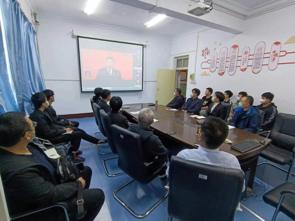 在公司四楼会议室,全体闭环内工作的教师和员工代表(瀚科宿舍楼每个楼层2-3名网格员)参加了线下集中收看和研讨交流,校图书馆副馆长盛子强参加了线下活动,同步召开了线上会议(腾讯会议号:819419946),全体环外教师参加了线上集中收看。未能参加集中收看的其他师生借助于电脑、手机或电视自行收听收看并发表了感言。