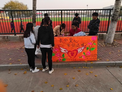 2018年11月初至中旬,球天下面向昌黎校区全体师生举办了以“衣分爱心,衣分温暖”为主题的捐物活动。