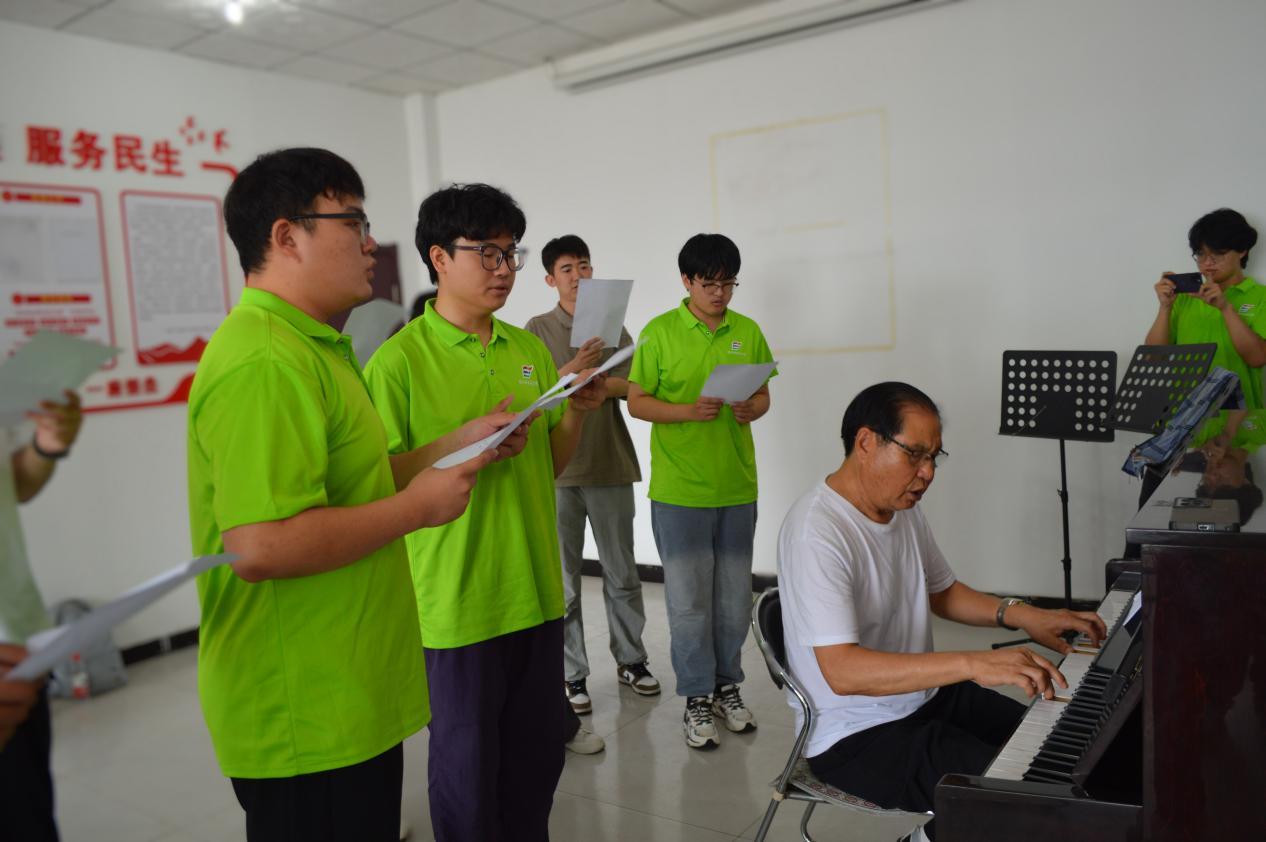 学习演唱民歌成为此次实践的重要环节。在王老师的精心安排下,实践团成员深入学习了昌黎民歌中的经典之作《天上的桫椤儿》。成员逐一接受了王老师对唱法、曲谱解读和情感把握的细致指导,并在王老师的鼓励与琴声的引领下,一同合唱了这首民歌。那一刻,队员不仅是学习者,更是民歌文化的传承者,用歌声连接过去与未来,让昌黎的民歌故事在新时代继续传唱。