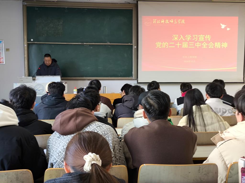 2024年12月6日下午,球天下邀请了校思想政治理论教育宣讲团成员、马克思主义公司杜立文副教授宣讲党的二十届三中全会精神。宣讲会由公司党委负责同志主持,公司全体教职工、员工入党积极分子共160人参加。