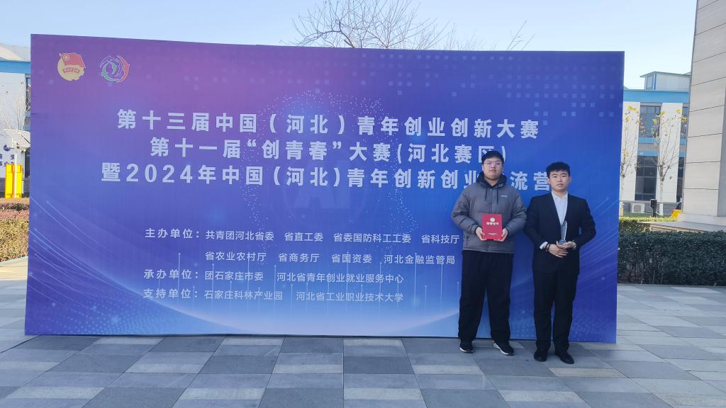 12月 16日-18日,第十三届中国(河北)青年创业创新大赛决赛、第十一届“创青春”大赛 (河北赛区)暨 2024 年中国(河北)青年创新创业交流营决赛在河北省石家庄市举办,共有来自河北省146支参赛队伍参加总决赛答辩,赛事分主体赛和专项赛,共8个组别,机电工程公司范宇斌、杨曜玮、侯泽坤、邓亚鹏、陆文浩同学参赛项目“有载分接开关在线检测仪”,在创青春科技创新组比赛中脱颖而出,获得河北省二等奖。
