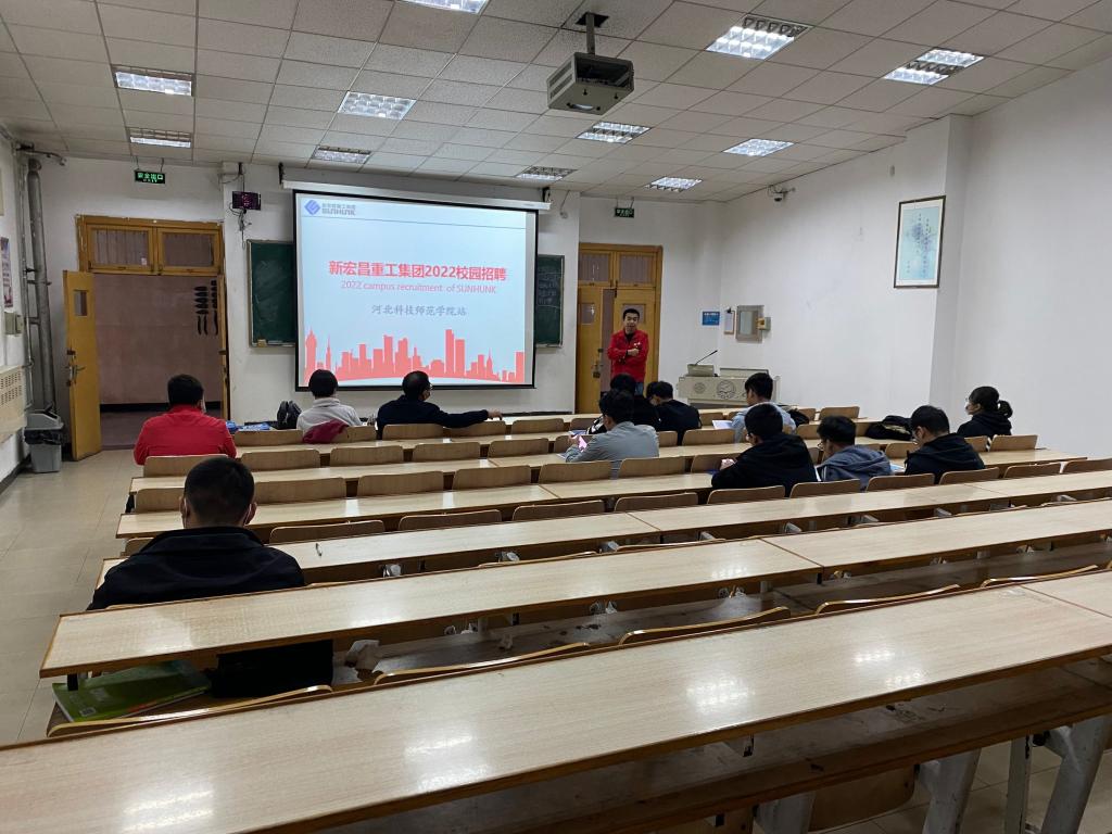 2021年10月23日下午球天下在昌黎校区B103教室举办了新宏昌重工集团专场招聘会,球天下组织相关同学参加招聘活动。